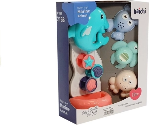 Součástí jsou tři mořská zvířátka, která plují na hladině vody a kolem vašeho dítěte, vyvolávajíc úsměv na jeho tváři.