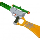 - Puška, 14 měkkých nábojů, terč, ochranné brýle, pojemník na náboje