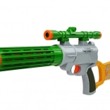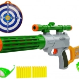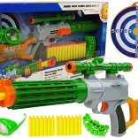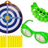 - Kompletní set: puška, 14 měkkých nábojů, terč, brýle, držák/pojemník na náboje