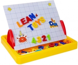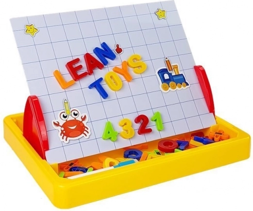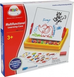 Tato magnetická kreslicí tabule je skvělou volbou pro předškoláky i školáky. Děti si procvičí psaní, kreslení a skládání slov a jednoduchých příkladů díky pestré kolekci magnetických prvků. Stabilní rozkládací konstrukce umožňuje pohodlné použití na stole i na zemi.