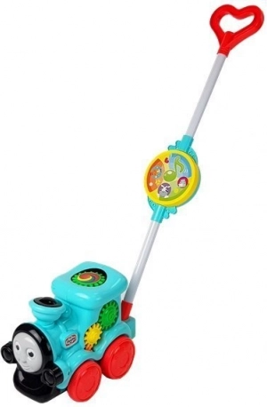 Tento barevný vláček na tlačení je skvělým společníkem pro nejmenší. Díky ergonomické rukojeti se snadno ovládá a podporuje přirozený pohyb dítěte. Při jízdě píská a hraje melodie, což motivuje děti k dalšímu objevování a zábavě.
