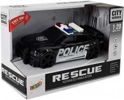 Realistické policejní auto ve škále 1:20 se světelnými a zvukovými efekty nadchne každého malého fanouška zásahových jednotek. Díky natahovacímu (frikčnímu) pohonu stačí autíčko přitlačit, natáhnout dozadu a pustit – a vyrazí vpřed. Na střeše jsou 3 tlačítka pro různé sirény a blikající červeno-modrá světla. Součástí balení jsou baterie AG13/LR44 a bezpečná konstrukce s certifikací CE pro děti od 3 let.