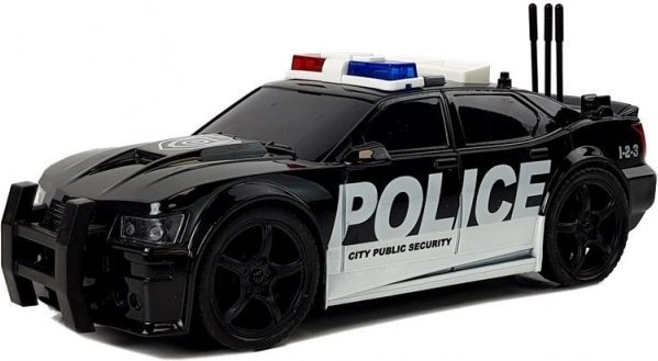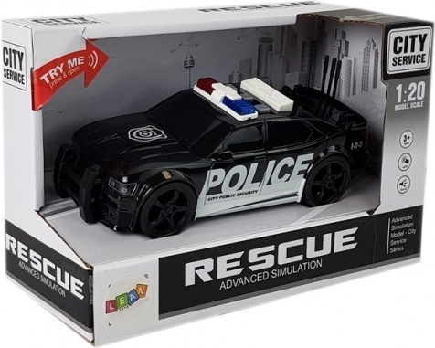 Stylové policejní auto v klasickém černém provedení s výraznými nápisy nabízí autentický zážitek ze hry. Ztmavená přední a boční okna dodávají modelu tajemství a podtrhují sportovní vzhled. Díky měřítku 1:20 jsou věrně zpracovány charakteristické detaily, což zvyšuje realističnost při hraní.