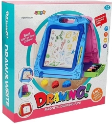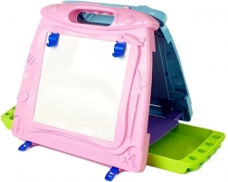Tato univerzální dětská tabule nabízí dvě plochy pro nekonečné malování a psaní: jedna strana je vhodná pro stíratelné fixy, druhá pro magnetické kreslení se stylusem. K obrázkům se děti mohou kdykoliv vracet nebo je jediným tahem rychle smazat posuvníkem. Lehká konstrukce s praktickým madlem a dvěma bočními zásuvkami udrží všechny potřeby po ruce.
