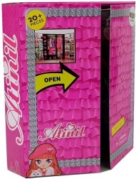 Otevírací krabice s grafikou šatníku přehledně uschová panenku i všechny doplňky. Více než 20 kusů v sadě.