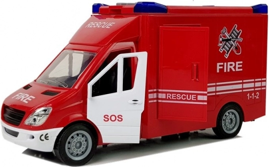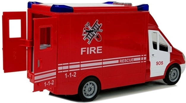 - Světla majáků, zvukové efekty, otevírací zadní a boční dveře