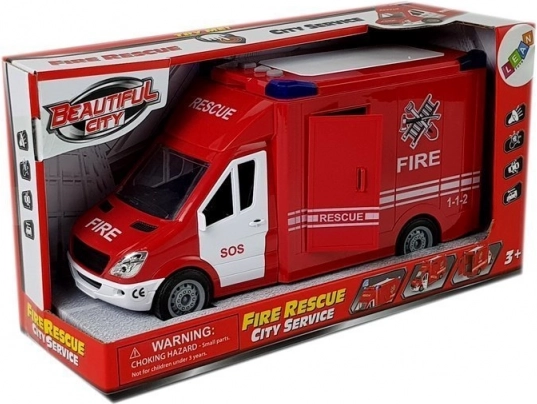 Realistické hasičské auto pro malé záchranáře potěší detailním zpracováním, otevíracími zadními i bočními dveřmi, funkčními světly a zvuky sirény a snadným pohybem díky setrvačníku. Ideální hračka pro děti od 3 let, vyrobená z odolného plastu a dodávaná v dárkovém balení.