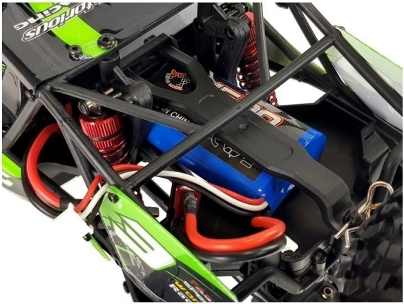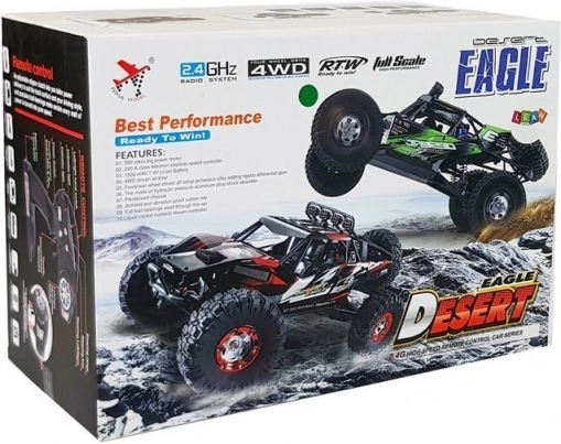 Výkonný terénní RC buggy v měřítku 1:12 s pohonem 4x4, rychlostí až 30 km/h a odolnou konstrukcí pro jízdu v náročném terénu. Velká off-road pneumatiky se speciálním vzorkem, nezávislé zavěšení všech kol a spolehlivé 2,4 GHz ovládání do 100 m zajistí skvělou stabilitu i zábavu. Napájí jej 7,4 V 1500 mAh Li-ion akumulátor, který poskytne až 15 minut jízdy.
