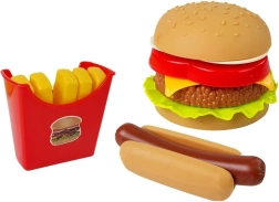 Herní kuchyňka obsahuje bohatý výběr položek, od hamburgerů a hranolků po sladké pochoutky, což dovoluje dětem vytvářet různé scénáře a hry.