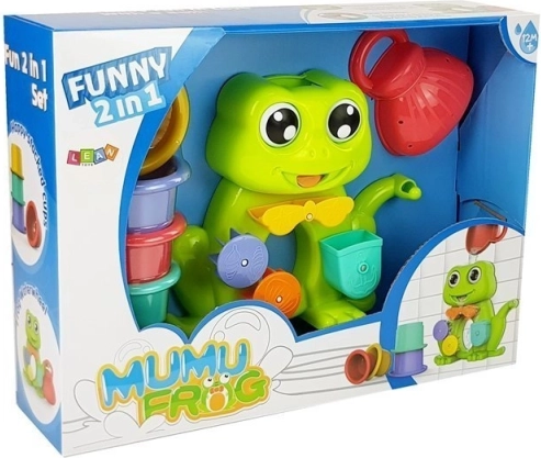 Tato rozkošná žabka s otáčivými prvky láká děti ke hře ve vaně. Po nalití vody do její hlavičky se spustí malé vodní kolo, které rozproudí proud vody ústy žáby. Kromě toho má žabka oči, které se při průtoku vody otočí, čímž zaujme a pobaví každé dítě.