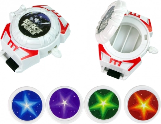 Vystřelovač disků lze nosit na zápěstí a používat ke střelbě barevnými disky, což přidává další úroveň vzrušení do hry.