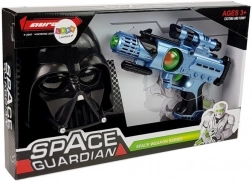 V této úžasné sadě naleznete futuristickou modrou pistoli a černou masku, která svítí díky modrým a červeným světlům. Děti si užijí realistickou hru na kosmické bojovníky. Každý prvek je vyroben z kvalitního plastu, který je bezpečný a odolný.