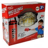 Vítězství v tréninku nebo při zábavném zápase osladí šampionátový pásek se zlatými prvky a barevnými kamínky. Součástí jsou také perfektně padnoucí boxerské rukavice.
