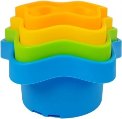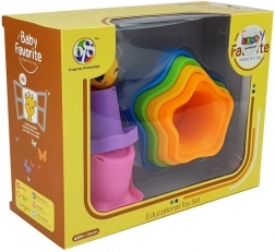 Každý hrníček má odlišnou barvu a tvar hvězdičky. Hračka nejen krásně vypadá, ale také podporuje rozvoj motoriky a pohybové dovednosti, procvičování úchopu a rozeznávání barev a tvarů. Skládání hrníčků pomáhá pochopit vztahy mezi různě velkými objekty.