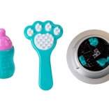 Sada obsahuje lahev, kartáč a misku s jídlem, což umožňuje realistické hraní a péči o pejska.