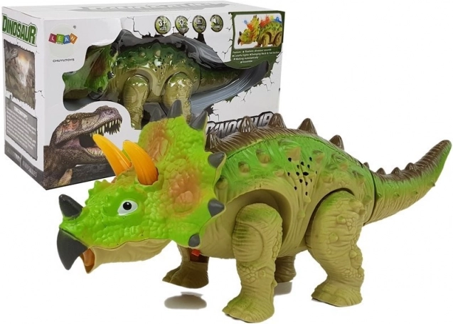 Zábava začíná po vložení baterií a stisknutí tlačítka na krku, které aktivuje jeho chůzi a světelné i zvukové efekty. Dinosaurus Triceratops je navržen tak, aby byl nejen vizuálně přitažlivý, ale i plný funkcí, co rozvíjí fantazii dítěte.