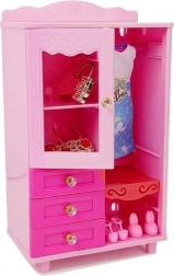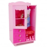 Praktická skříň s policemi a zásuvkami pomůže dětem třídit oblečení, boty a doplňky panenky.