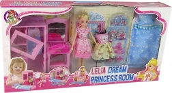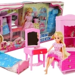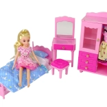 Kouzelná sada pro malé stylistky přináší panenku a kompletní ložnici – postel s peřinkou, šatní skříň a toaletní stolek se stoličkou. Vše v jemně růžovém designu s modrou dekou s hvězdičkami podporuje kreativní a nápaditou hru a učení samostatnosti při oblékání a péči o panenku.