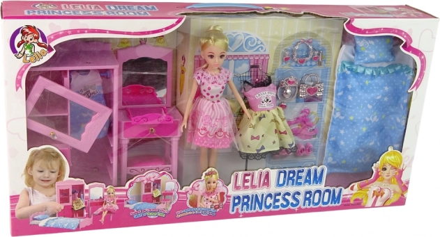 Tato detailně zpracovaná sada ložnice pro panenky promění každý dětský pokoj v růžové království. Děti si zamilují pohodlnou postel s měkoučkou dekou a polštářkem, prostornou šatní skříň na oblečky a toaletní stolek se zrcadlem pro každodenní rituály krásy.