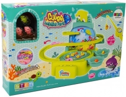 Sada obsahuje delfíny, kachničky a rybičky, dvě akvária, pruty, díly skluzavky i nálepky – vše pro kreativní a dlouhou zábavu.