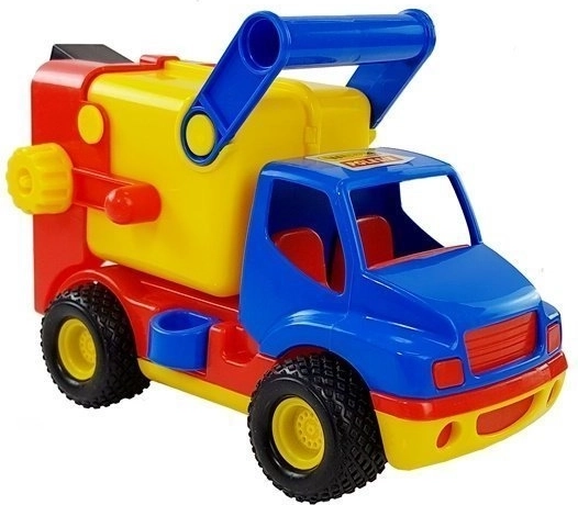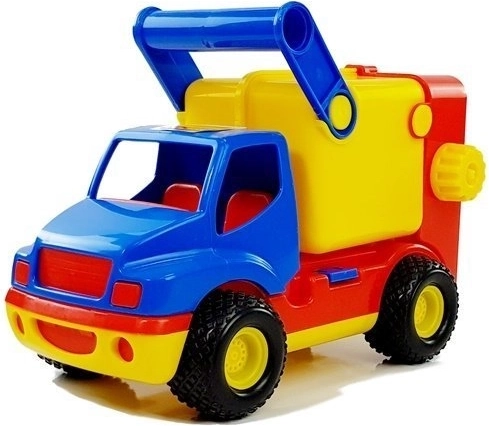 Barevná plastová popelářská auta POLESIE potěší každého malého řidiče. Nabízí lehkou a bezpečnou konstrukci bez ostrých hran, gumová běhounová kola pro jízdu v interiéru i venku a funkční kontejner s košem na odpad. Hračka má certifikát CE a je vhodná od 12 měsíců.