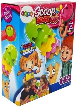 Scoop Stack Up je perfektní hra pro rodinné večery, kde vy a vaši blízcí změříte své dovednosti a trpělivost ve stavbě věže ze zmrzlinových kopečků. Hru mohou hrát od 2 do 4 osoby, a je vhodná pro děti od 3 let. Cílem hry je pomocí lžičky umístit co nejvíce kopečků na sebe na kornout, aniž by celá věž spadla.