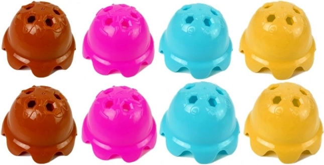 Celý set je vyroben z plastu a má certifikát CE. Rozměry kornoutu jsou 11,5 cm na výšku, lžičky 17 cm na délku a kopečků 7 cm x 4,5 cm. Baleno v krabici velikosti 25 cm x 20 cm x 7,5 cm.