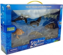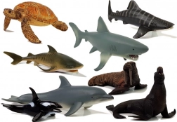 - 3 žraloci, mrož, tuleň, delfín, želva, kosatka