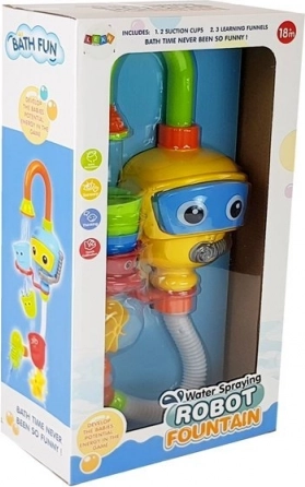 Tato hračka je skvělým doplňkem do vany pro kojence. Její funkce podporují samostatnou hru a umožňují objevovat mechanizmy nalévání vody z kelímků. Zadní část robota je vybavena přísavkami, které umožňují jeho připevnění k vaně, s tím, že spodní část hračky by měla být ponořena ve vodě. Po připevnění stačí stisknout brýle robota, čímž začne voda proudit ze sprchy do fontánky. Speciálními kelímky lze snadno změnit směr vodního toku a pohyblivé díly hračky vytvářejí vodopád.