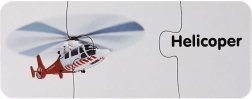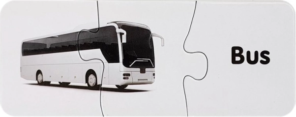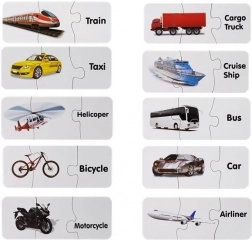 Tato sada edukačních puzzle propojuje učení a zábavu. Každá dvojice obsahuje obrázek dopravního prostředku a odpovídající anglické slovo – dítě si tak při skládání přirozeně rozšiřuje slovní zásobu a trénuje vizuální paměť. Samokontrolní tvar dílků napoví správné řešení, takže se děti mohou učit samostatně a s radostí.