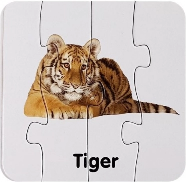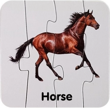 Zábavná sada vzdělávacích puzzle, která propojuje hru a učení. Děti skládají obrázky divokých zvířat a zároveň se učí jejich názvy v angličtině. Sada nabízí 10 samokontrolních dvojic, podporuje jemnou motoriku, trpělivost a vizuální vnímání. Ideální pro předškoláky od 3 let.