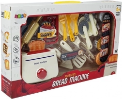 V balení najdete toster, talířky, příbory, váleček a 4 kelímky plastelíny v různých barvách. Hračka je vhodná pro děti od 3 let, splňuje CE a normu EN 71 a je zabalena v dárkovém okně – připraveno k obdarování.