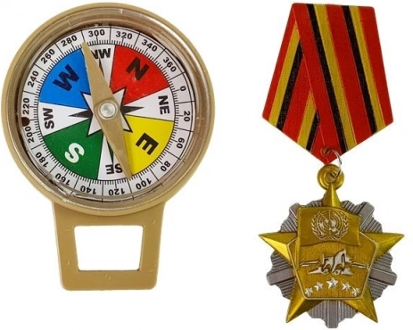 - pistole, pouzdro na pistoli, nůž s pouzdrem, lornetka, headset s mikrofonem, krátkovlnná vysílačka, kompas, menážka, píšťalka, vojenský řád