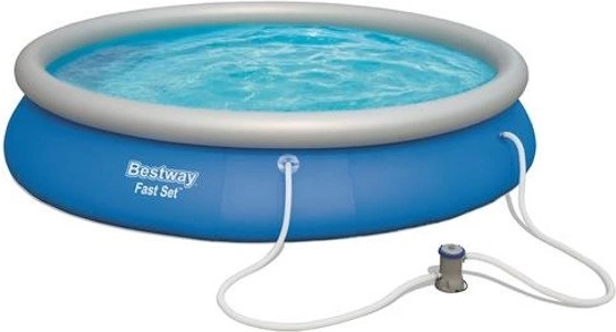 Bazén Bestway Fast Set je konstruován pro jednoduché postavení během několika minut. Stačí nafouknout horní kruh a bazén se automaticky postaví díky vzrůstající hladině vody.