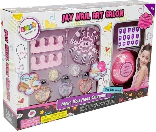 Tento manikúrní set je skvělý způsob, jak dívky zabavit a přitom je nechat experimentovat s kosmetikou bezpečnou pro děti. Příslušenství jako je fén na nehty, laky v krásných barvách, nálepky, a samozřejmě třpytky a jiné dekorace, pomohou vytvořit jedinečný styl.