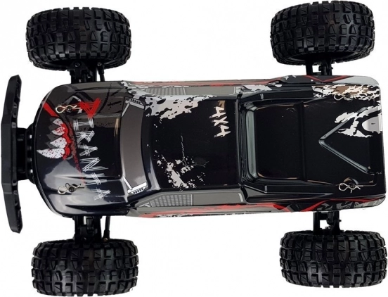 Model je osazen silným kartáčovým motorem 540, má olejové kovové tlumiče a odolné gumové pneumatiky pro spolehlivou trakci. Dobíjecí baterie 7,4 V / 1700 mAh poskytne přibližně 18 minut jízdy (dle stylu použití), nabíjení probíhá přes USB nabíječku.