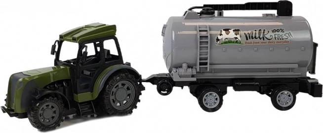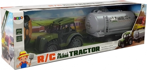 Zelený RC traktor s cisternovým přívěsem na mléko 2.4G