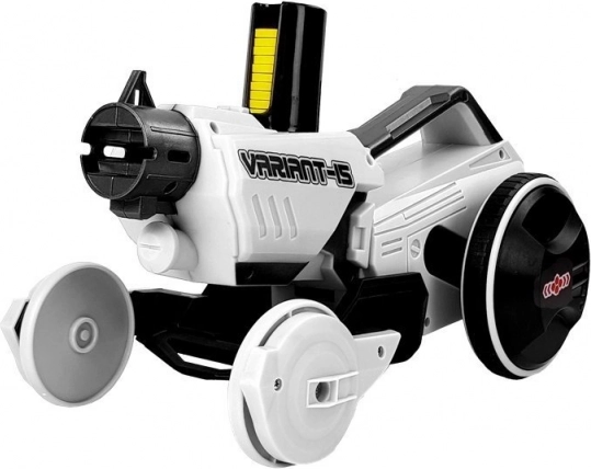 Ovladač má spoušť pro jízdu vpřed/vzad a otočné kolečko pro precizní zatáčení. Připojením ovladače na záď auta a složením podvozku vytvoříte velký ruční blaster s pohodlným úchopem. Silná střelba a skvělá rychlost přinesou dětem spoustu akce i fantazie.
