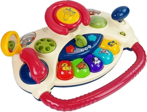Užijte si hodiny zábavy s tímto interaktivním volantem, který dětem přináší svět barev, zvuků a tvarů. Děti mohou objevovat svět prostřednictvím barevných tlačítek, které aktivují světla a zvuky, což výrazně podpoří jejich motorické dovednosti a schopnost chápat okolní svět.
