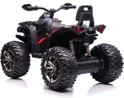 Tato akumulátorová čtyřkolka potěší malé milovníky rychlé jízdy i rodiče, kteří ocení bezpečnou a pevnou konstrukci. Velká kola se vzorkem zajišťují dobrý záběr na různých površích a LED světlomety podporují viditelnost i atraktivní vzhled.