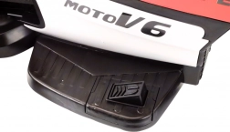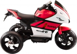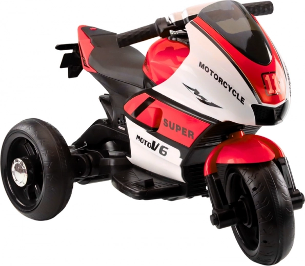 Dynamické červeno‑černé provedení a motorkářský vzhled motivují děti k aktivní hře venku.