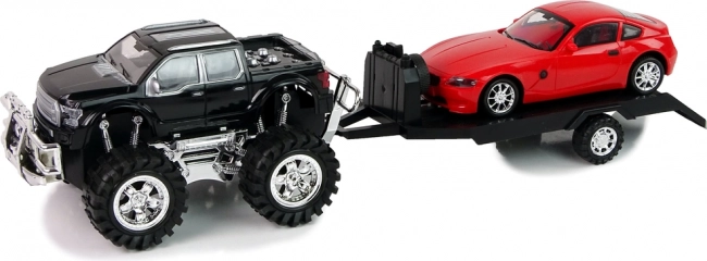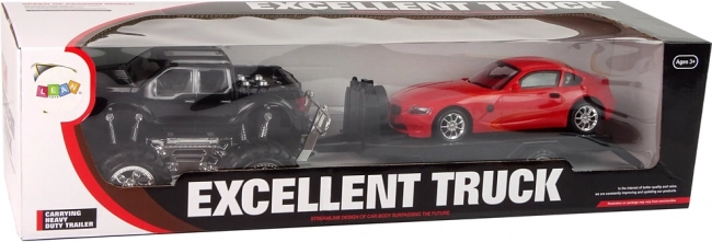 - Kompletní set 3 v 1: monster truck, přívěs a sportovní auto.