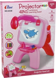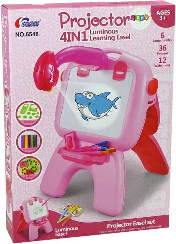 Tato pečlivě zpracovaná, volně stojící tabule nabízí dvě kreslicí plochy – bílou pro suché mazání a černou pro kreslení křídou. Na horní části je umístěn projektor, který promítá zvířátka a postavičky k snadnému obkreslení. Do praktických šuplíčků uložíte fixy, křídy i šablony. Ideální do dětského pokoje a pro každodenní tvoření.