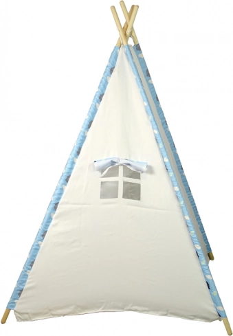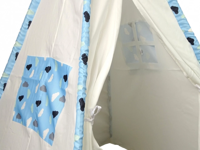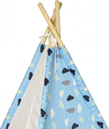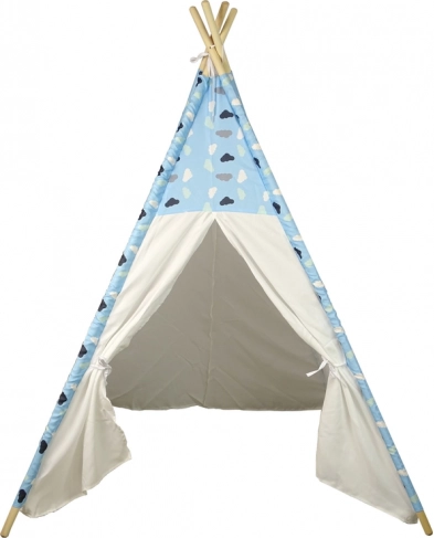 Stylové dětské teepee s motivem mráčků je ideálním místem pro hraní i odpočinek doma i venku. Nabízí pevnou dřevěnou konstrukci, voděodolnou látku a snadné sestavení. Děti si zamilují útulný prostor pro čtení, schovávanou i společné hry.