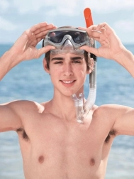 Tato kompletní šedá sada je ideální pro rekreační šnorchlování u moře i v jezeře. Maska s odolným tvrzeným sklem nabízí čistý výhled pod vodou, silikonová lícnice se spolehlivě přizpůsobí obličeji a drží bez nepříjemného tlaku. Šnorchl s technologií „suché trubice“ minimalizuje pronikání vody, takže si můžete užívat klidné dýchání na hladině.