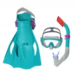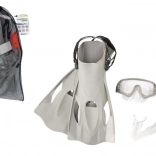 Ploutve mají měkkou kapsu na chodidlo a nastavitelný patní pásek, díky čemuž pevně sedí a nekloužou ze nohy. Velikostní rozsah 41–46 pokryje většinu dospělých uživatelů. Celý set se snadno přenáší a je připravený k okamžitému použití pro vaše vodní dobrodružství.