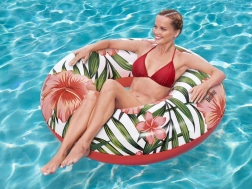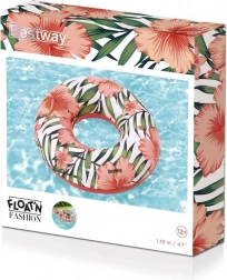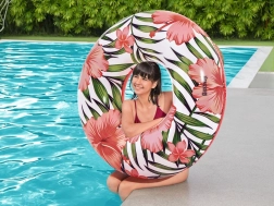 Užijte si léto s plavacím kruhem BESTWAY o průměru 119 cm s tropickým květinovým motivem. Odolný z PVC, vhodný pro mládež 12+ i dospělé, ideální na bazén, pláž i jezero. Snadné nafukování a vyfukování, bezpečný zpětný ventil a kompaktní balení na cesty.