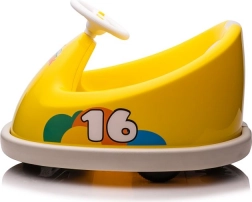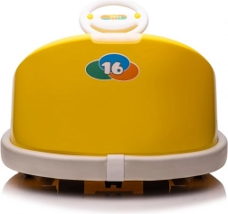 Žluté odrážedlo upoutá pozornost každého dítěte díky své jasné barvě a číslo '16' přidává sportovní vzhled.