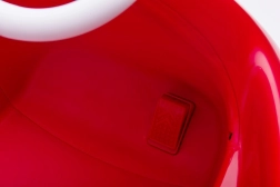 Červené vozítko je zkrášlené roztomilými nálepkami, které zaujmou každé dítě.