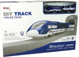- Kompletní set 92 dílů: koleje, stanice, most, tunel, značky a figurka policisty